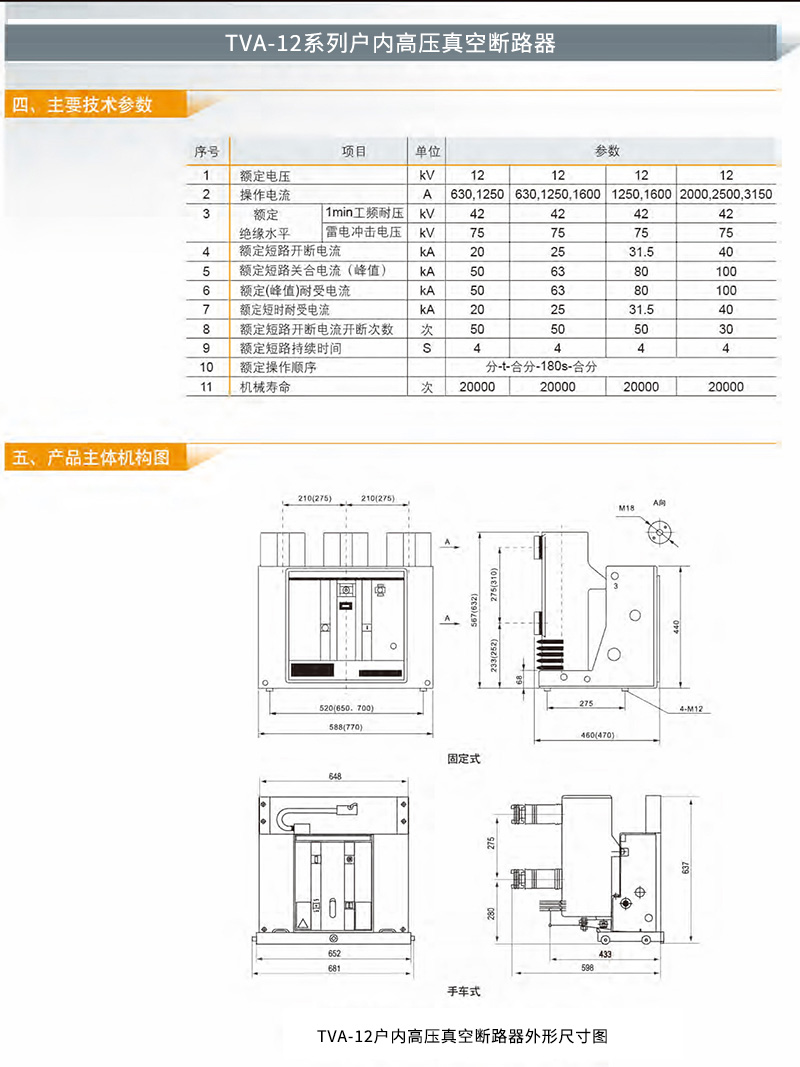 TVA-12系列户内高压真空断路器