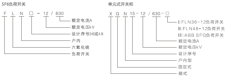 XGN15-12系列交流金属环网开关设备的主开关选用本公司生产的FLN36-12型或ABB公司生产的SFG型SF6负荷开关.