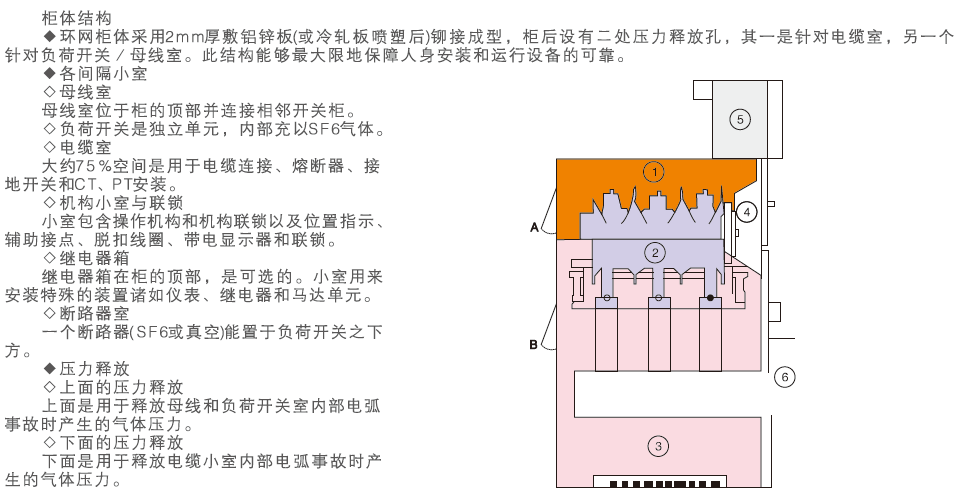 柜体经数控机床加工后铆接而成,防护等级达到IP3X ,并有可靠的机械联锁和防误操作功能.本产品具有体积小、重量轻、外型美、躁作简便、长寿命、高参数、无污染、少维护等极具**的特点。